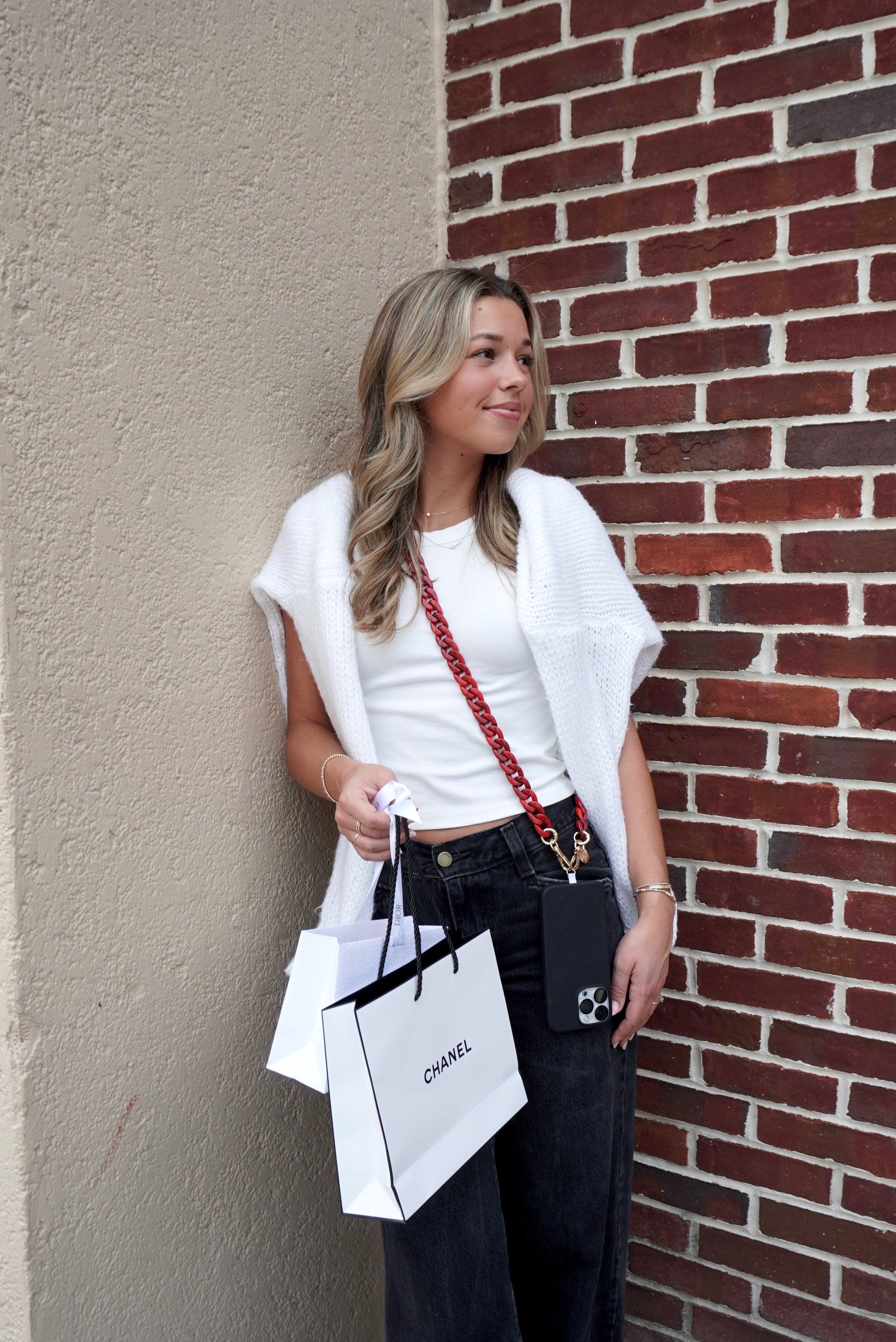Elevate your phone's style with our 47-inch acrylic phone chains, featuring dual golden rings and carabiners. Easily attach them to any of our phone cases, or use the included adapters to secure them to your own fully covered case. Experience the perfect blend of fashion and functionality with these versatile accessories.